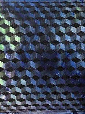 I am captivated by your painting. Normally this repeat pattern does not hold my interest, but your colors and the creative bend to the Cubes, keeps the viewer engaged.