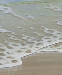Dimensional Tip! One way to avoid "flatness" in the foreshore area, is to use this little trick: Create the illusion of the suds being suspended above the sand by mixing a very thin wash of burnt umber & applying it as a shadow "under" the suds. Instant depth!