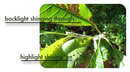 Super Sunlight Effects! Look at a backlit leaf on a bright day. You will notice that the colour will be different from the light that is shining directly onto its surface. When painting backlit leaves, you can add more “warm yellow” ie Cadmium Yellow Medium (light shining through the leaf). When painting direct light (highlight), use white and add a touch of Cadmium Yellow Light (cool yellow) to your white highlights.