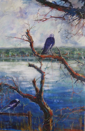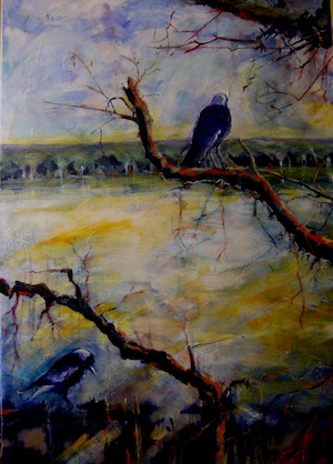 This is the section where you can "get your name in lights!" (well at least out there in the internet world!).If you have works in progress you would love to show off, or finished pieces you are particularly proud of, we would love to see them! We especially like to hear about the story behind the creation. Our WIP this month comes from talented artist Christine Read. Christine was walking around our local lake with her camera and was quite taken with the magpies warbling and chattering. They were so inquisitive, curious and inspiring, she just had to paint them! Christine said that the top section of the painting went well, but the middle and bottom sections just became a struggle. After sitting on the work for three weeks, she decided that the level of frustration meant painting out the offending parts and approaching it with a fresh perspective. The result which extended the "mood" of the painting into a darker area on the shoreline and fitted better with the inquisitive nature of the magpie in the bottom left corner sat much better with Christine, and she also learnt a valuable lesson - you can paint over stuff! As Mark likes to say, "no one dies"!!