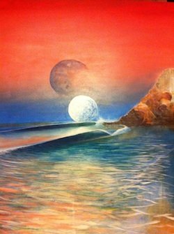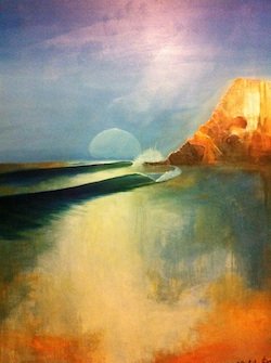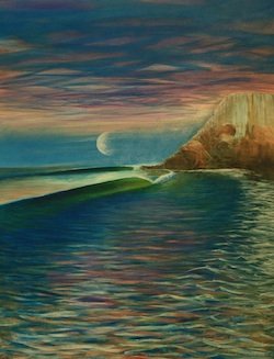This is the section where you can "get your name in lights!" (well at least out there in the internet world!).If you have works in progress you would love to show off, or finished pieces you are particularly proud of, we would love to see them! We especially like to hear about the story behind the creation. Our WIP this month comes from local postie, surfer, good mate and talented artist Brett McCormack. Brett is somewhat "shy" (ahem, lazy) about sharing his experience with this painting, however he did mention that with this piece "Moon Point" he was a getting a bit over painting sunsets, so decided to paint the moon instead. You can see the painting took Brett on a bit of a "moondance" (oh dear, sorry), and where he ended up was considerably different from the beginning. That fantastic journey. I have always found Brett's use of colour delightful and suprising, and the end result doesn't disappoint! I don't know about you, but I can't decide which one I like best.