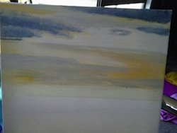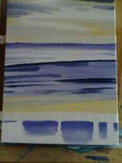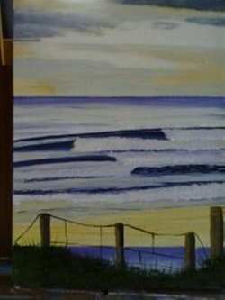 This is the section where you can "get your name in lights!" (well at least out there in the internet world!).If you have works in progress you would love to show off, or finished pieces you are particularly proud of, we would love to see them! We especially like to hear about the story behind the creation. This months' WIP comes from Jenni Watkins from New Zealand! Yay, our first overseas contributor! From Jenni: "My name is Jenni Watkins and I live in a little town in NZ called Maketu. My husband is the president of the local surf board riders club the MBR (Maketu Board Riders). One of the boys (Sam) took a photos of Papamoa beach late afternoon in Autumn. I decided to paint a picture of it as I was intrigued by the colours, especially the purple shadow on the sand and the colour of the waves. I have included three stages of my painting called "Late Afternoon at Paps". I had been reading through the dry brushing techniques in the Acrylic Anonymous news letter and used some of this technique in the painting, thanks." Thanks so much for sharing Jenni - top work!