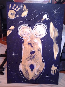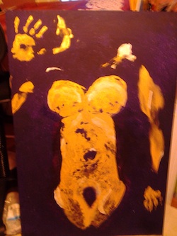 This is the section where you can "get your name in lights!" (well at least out there in the internet world!).If you have works in progress you would love to show off, or finished pieces you are particularly proud of, we would love to see them! We especially like to hear about the story behind the creation. This months' WIP comes from Jodi from the US. Yippee, another contributor from over the seas! Jodi contacted us via the site for some assistance with this painting, and in the process we became hooked on her journey with this piece. A beautiful story - her piece created especially for a friend with breast cancer. Thankyou so much for sharing Jodi. From Jodi: "This was definitely my first attempt at biting off more than I could chew. That makes the victory much more sweet. I started this project in high spirits. I met with my client and had a good understanding of what she was passionate about. I went with the dioxozine purple. She said that colour was relaxing to her. As I prepped the canvas I started to feel the warmth and serenity of the night sky, so I headed down that road. She also was very excited about things that sparkle (who isn't!). When we had the imprint down - she said "you will make it a masterpiece". No pressure there! I struggled for weeks and weeks about the way the imprint made her appear to seem bigger than she actually is. So - the questions came. Screw with the integrity of the imprint and cover it up? Should I leave it knowing it was misleading? I took the cover up approach. I took a leap of faith and met with yet another disaster. Blotchy spots galore. To remedy I had to literally cover the entire canvas except for the imprint. After letting that dry I was again inspired and saw how it looked like she was floating in the sky like she was her own constellation. So I set out for completion. Some outlining and stars. And my biggest challenge is to stand away and let well enough alone. Thank you for your support through my journey. Thanks so much for sharing JoJo - a beautiful piece and a beautiful story to go with it.