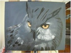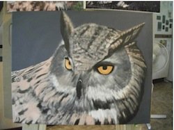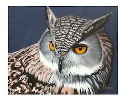 This is the section where you can "get your name in lights!" (well at least out there in the internet world!).If you have works in progress you would love to show off, or finished pieces you are particularly proud of, we would love to see them! We especially like to hear about the story behind the creation. This month's post comes from friend of the Explore site and all round lovely lady, Sandra Price. From Sandra: "The story of Cleo. I 'met' Cleo the eagle owl on a visit to a birds of prey centre in the UK. I was compelled to paint her even if it was a stretch for my artistic skills at the time. Cleo was my fourth painting and lack of confidence, having no clear idea of having how to approach the painting and inexperience were my biggest difficulties. My absolute love for the owl was the only thing going for me really. I underpainted the entire canvas in a blue grey which compliments the distinctive orange eyes. I drew in a rough line drawing using a pastel pencil and a combination of free-hand drawing and gridding. I then started to roughly add in blocks of colour focussing on darks and lights. I continued to build up blocks of colours in layers, refining and adding detail along the way. I struggled when applying the colours and I think it was because I let the canvas get too dry and wasn’t using enough paint. In the final layer I sharpened the detail, increased the tonal variations and added some glazing to the eyes. I kept painting even when I didn’t know what to do or how to go about achieving an effect. I trusted that if I just kept going the painting would develop. I’m happy I did because Cleo remains one of my favourite pieces." Thanks for sharing your story Sandra - we can see how much you loved Cleo - it shines through in your painting. Well done!