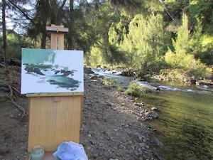 This is the section where you can "get your name in lights!" (well at least out there in the internet world!).If you have works in progress you would love to show off, or finished pieces you are particularly proud of, we would love to see them! We especially like to hear about the story behind the creation. This month’s painting adventure comes from prolifically talented Northern NSW artist, Maria Heaton. Thanks for sharing Maria :) From Maria: “Having been primarily a studio painter for over 25 years now, I have always admired those landscape painters who get out in the environment to paint. Its been a "romantic dream " of mine for a while now although the logistics of time, place, sunburn, cold, pesky bugs and the possibility of coming across a snake have always made me put it on the backburner! Driving the border ranges on Lions road is not for the fainthearted but it was there that I chose for my little getaway. The spectacular mountain scenery was tempting, but it was Running Creek that stole my heart and begged me to paint it. Perhaps it was the fact that this road crosses the creek some 20 or so times on narrow one lane wooden bridges that influenced me! I arrived and set up camp beside the creek ......and I was excited to be there but realised I had put pressure on myself to produce something on canvas. I spent the afternoon looking about, taking photos, watching the play of light changing on the rock faces, and watching the water flowing in the creek. I did a little drawing to settle the nerves and began to relax. I decided to wait till the morning and have a fresh start. I realised my own need to be relaxed before I could paint! The sounds of playful creek gurgles soothed me to sleep and I woke enthused to paint. The sun crept down the steep mountainside quickly, and by 8am my easel was up and I was eager ........there was nobody around thankfully. If I was going to make a mess I didn’t need anyone to see it! ALL those creative doubts and thoughts tried to creep into my head and I consciously pushed them down. There was no place for them to take hold! I chose to work in acrylics this time as I am not set up yet to travel with wet oil paintings. Plein air work is so different to working in the studio. There is the weather.....time of day .....movement of the sun and changing light to deal with. There is an urgency in the work ......to try and capture a moment in time before the whole scene before you changes. I realised I would have no more than 2 hours to get it down on canvas. I did two paintings that day, and although they are not "finished" to studio standard, that was never the intention. The challenge of working quickly and under time pressure has paid off and I am very happy with myself and my 2 little paintings. In fact, I left with the biggest smile on my face....not only did I plein air but I did it alone! Get out there! It's fun! Maria runs regular painting classes from her studio in Ballina, and can be contacted on 0438867564, or via her Facebook page at Marias FINE ART :) Thanks once again to Maria for sharing her exciting solo adventure with these wonderful plain air paintings!