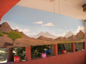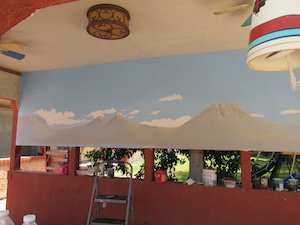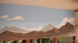 This is the section where you can "get your name in lights!" (well at least out there in the internet world!).If you have works in progress you would love to show off, or finished pieces you are particularly proud of, we would love to see them! We especially like to hear about the story behind the creation. This month’s large scale painting comes from Don Burns, from the US. From Don: “My friend Sam lives in Mesa, Arizona. In his backyard he has two enclosures, one is like a tropical tiki bar, and the other is sort of Southwestern. I call it the Alamo. Sam asked if I would paint a 4' x 7' ocean mural behind his tiki bar. So in 2007 I painted a seascape mural for him. I hadn't seen him since 2007. He called in June this year, and asked if I would paint a desert landscape on a 4' x 16' wall in the Alamo. The first photo is the sky, and clouds. I then added the distant mountains. Next came the mid- range mountains, and the beginning of the foreground foliage. And finally the finished work.” Many thanks to Don for sharing - Don also mentioned to me his work was inspired by Mural Joe’s tutorials. So thanks Mural Joe as well :)