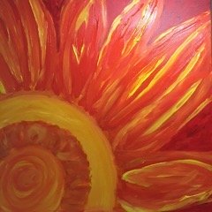 This is the section where you can "get your name in lights!" (well at least out there in the internet world!).If you have works in progress you would love to show off, or finished pieces you are particularly proud of, we would love to see them! We especially like to hear about the story behind the creation. This lovely summery piece comes from Susan Sullivan from Manitoba, Canada; a long time supporter of ours, who first featured in AA in November 2014. From Susan: "I painted this Sunflower to donate to the Walk of Hope held here in Manitoba to support Ovarian Cancer. Their logo is a yellow sunflower that grows huge crops here in Manitoba. Their signature color is teal. There is an orange sunflower, and many other colors. Sunflowers as you may know, face the sun at all times, as the sun moves during the day the flowers turn and physically follow the Sun. They’ve adopted this flower to represent eternal hope for healing and curing. I have a friend who is an Ovarian cancer survivor, four years now, and I wanted to give something meaningful to their fund raising. I had a very close friend who didn’t survive. I hope this painting is capable in helping them raise some funds. I took progress shots this time. It is 24x24 inches, gallery wrap stretched canvas." Thanks to Susan for sharing her inspirational artwork and story with us!
