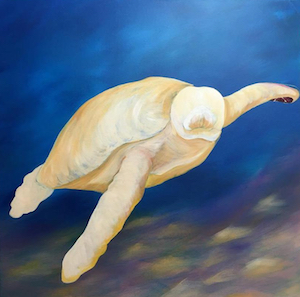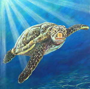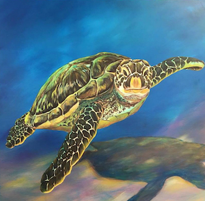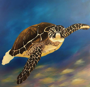 This is the section where you can "get your name in lights!" (well at least out there in the internet world!).If you have works in progress you would love to show off, or finished pieces you are particularly proud of, we would love to see them! We especially like to hear about the story behind the creation. Penny Stanton is one of our biggest advocates and an amazing teacher and artist. She operates from her studio “Inspired Artspace” in Wyong, NSW, Australia, and holds regular classes and workshops, inspiring all with her love of throwing the coloured goo around. From Penny: "Wise One" This turtle is called “Wise One” - I originally painted it and wrecked it completely. Then re-did it and rescued it. It was hung at the Royal Easter Show in the Marine and Seascape Section and sold at the show - I was completely chuffed someone loved him and took him home!