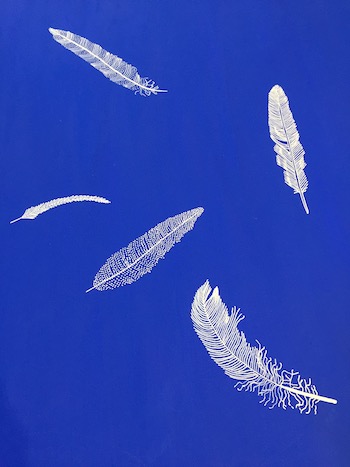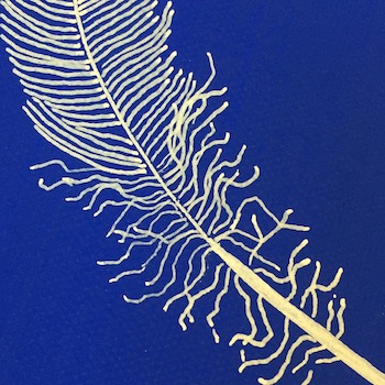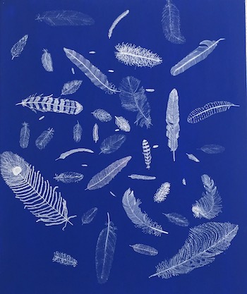 This is the section where you can "get your name in lights!" (well at least out there in the internet world!).If you have works in progress you would love to show off, or finished pieces you are particularly proud of, we would love to see them! We especially like to hear about the story behind the creation. Jan McGiffen is a wonderfully creative soul who is a regular at the Lennox Arts Collective Gallery. From Jan: "100 Feathers" My journey as an 'artist' is a fairly recent one. It began two years ago when I started taking art classed at the local arts collective and I was immediately hooked. For me art is all about the process, the joy in the 'doing' and the meaning behind whatever I am working on. It has been an interesting journey to find the style of art that I like and the medium that suits me best. I'm not really sure that I know yet. The pieces that I like the most usually come intuitively rather than a landscape that's in front of me or from a picture in a book. I love photography so tend to take photos that hold meaning for me and then use these as the catalyst for my art. I am also an avid beachcomber and fossicker so have many collections of ' found objects' that I use for inspiration. As I live close to the beach a large part of my collection consists of shells, beach stones, weather worn glass, driftwood, feathers and some beautiful rare fossils. Most of my paintings and drawings have a feather in them somewhere. I like to think of feathers as little messages, perhaps because when I was a child my father would tell me that they had fallen from an angels wings! Even now I find it hard to walk past a feather without picking it up. The piece that I am currently working on at the moment is one of a few paintings, drawings and photos that I am exhibiting in September at my local art gallery. The exhibition is called 'Her Beauty and her Terror' and this particular piece is titled '100 Feathers'. All of the feathers in this work have been found by me or gifted to me by friends who know about my feather fetish! I have used a canvas measuring approximately 50 x 70 cm and painted a ground using Atelier Free Flow 'cobalt blue hue'. I wanted the blue to represent the sky on a clear Winter's day and for the feathers to appear as if they were falling from the sky. The feathers are drawn using a white uni Posca pen .7 mm. I feel that using the pen gives more more control than a brush would for this finer work and enables me to add more detail to the feathers. I also set aside the pens that are running low on ink and these are used for the finer more translucent feathers. I am only halfway to my 100 feathers and with space at a premium I will draw some feathers flowing over on to the sides of the canvas. This piece is moving slowly and I find the whole process very meditative. There really is no plan to it other than to draw a feather as it appears to me; washed up and bedraggled on the sand or smooth and delicate lying gently on the grass. Each one perfect in its own way. So I will continue with my feathers until there are 100. Then I look forward to big paint, big canvas, no brushes, only my hands... But that's another story.