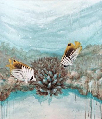 to showcase. You can even nominate someone if you like. (Or yourself!). To do this, check out the forum and then send us an email! It’s that easy. This month we're featuring Jenny Berry, from Adelaide, Australia with her paintings under the title "Underwater Love". We are loving the depth you’ve achieved with “Blue Synergy” and the transparency of the water with “Ningaloo Reef: Threadfin Butterfly”. Beautiful work Jenny - thank you so much for sharing! Click here to read about Jenny's Underwater Loves.