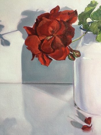 This beautiful old vintage cream can seemed perfectly matched with a cutting of geranium out of my garden... both pieces reminded me of my grandmother, and I felt the urge to paint this simple composition.