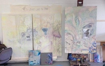 An overflow from the main body of work will also include some smaller canvass that will continue the same flow, colour and expression. Some are already in existence and some will be worked on as my art practice continues to develop. I have also created several Artist books which I would like to include in the exhibition, perhaps in a glass case."