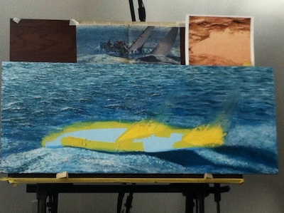 I made valiant effort, but didn’t have the skills or understanding of materials to have the success I desired. So, it was shelved for many years as the other responsibilities of life (family and careers) became the priorities. But, there were elements of that original effort that convinced me that I could do it as I visioned in my mind. I painted that painting in my head for 30 years waiting for the time to be right. That was a BIG mistake in that with the wisdom of age, you come to realize that it is never ”just right” and you have to dive in and do it. I eventually came to a transition point in my life and I finally decided it was my turn. I got rid of some bad habits and began a process to re-invent myself. This included that I was going to fulfill my dream of becoming a “Marine Artist”. Well, I started by buying all kinds of art supplies and studying YouTube and the Internet for lessons and understanding. I also must add that I was a student of marine paintings/artists on the internet for a decade before I began to paint. I learned what I liked, what I didn’t like. I began to follow artists that I wanted to emulate or at least strive to learn their skills. Soon, I understood that I had a lot to learn! At first, I tried drawing it, to mechanical, I tried watercolors, wasn’t loose enough for that media, tried pastels and oil pastels, didn’t allow myself time or experience to understand how to control either, and I was intimidated by the seeming complexity of oils so I didn’t try.