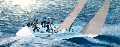 This is the section where you can "get your name in lights!" (well at least out there in the internet world!).If you have works in progress you would love to show off, or finished pieces you are particularly proud of, we would love to see them! We especially like to hear about the story behind the creation. This month's submission comes from an incredibly inspiring artist named John David Taylor (known as David Taylor - not the watercolourist from NZ however). David has shared the story of his first painting which is an epic that spans many years, and the wisdom came upon over those years. From David: "OK, here’s a part of my story. It’s about the completion of a dream which took almost 40 years to realise. My interest in art goes back to early childhood as my grandfather designed and built boats and my aunt was an “artist”. At that time I became infatuated with the idea that these were possible pathways in life to consider along with the other dreams that were developing in my mind. Although I’ve never had any formal art instruction or education, like many of my skills, I’m self-taught. I must admit also that throughout my schooling, I did a lot of ”doodling” instead of paying attention to the lessons. Since my area of interest is “Maritime Painting”, I must disclose that although I haven’t had any formal art/painting instruction, I spent years on a drawing board as a Yacht Designer (first career). This may explain my “tight, detailed, accurate approach“ to my paintings. Hopefully, this is a lesson in not only knowing the subject, but also in having a passion for the topics you wish to portray. There are two bits of advice I can pass along, first nothing happens without a dream, and second one must have a fearless persistence to satisfy yourself. A painting will wait patiently for your imagination and skills to catch up. Also, from 40 years in rehabilitation medicine, (second career, not self-taught), I’ve learned that “The people that do the best, are those that keep moving”. This also relates to those that keep painting. Creativity is like telling a story. I want the viewer to be drawn into the painting, to feel the elements. Honestly, I get more satisfaction than anyone in that it becomes part of a story that is 100% mine and proof that you can accomplish what you dream. The story of “Rocket Ship” began as a young yacht designer enamored with a photo in a sailing magazine. I must disclose that years later, as the painting was evolving, I reached out to the photographer Daniel Forester and received permission to do a representative painting utilizing his creativity. Remember, this was the first painting I had ever attempted and didn’t appreciate the respect of copyright. I have since begun developing my own compositions and creativity. In the beginning I thought, I’m good at drawing, I’ll just get a poster board and some India ink (water based) and make a painting.