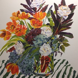 This is the section where you can "get your name in lights!" (well at least out there in the internet world!).If you have works in progress you would love to show off, or finished pieces you are particularly proud of, we would love to see them! We especially like to hear about the story behind the creation. This month's submission comes from fellow Lennox Arts Collective member and beautifully colourful and expressive painter Christine Read, and her painting "Celebration". From Christine: "I don’t know about you, but some paintings take a lot of deliberation and never quite come together, while others almost paint themselves! With a minor hiccup, ‘Celebration’ was one of joy. On my birthday, right in the middle of the first Covid isolation, when I had hoped to be in England with my children and grandchildren, but was celebrating just with my husband in Australia, a huge bunch of gorgeous flowers arrived just on dusk - a total surprise from my daughter.