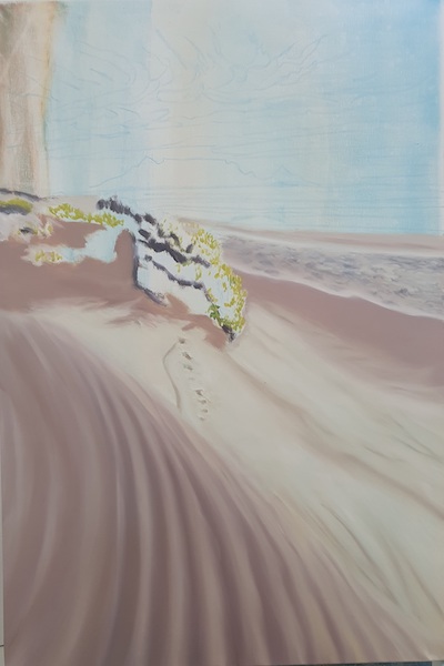 It’s conventional to paint the most distant section first working forward starting with the sky. Although on some occasions I do follow that process, many times I don’t – like this one. I was eager beginning with the sand as I hadn’t painted dunes like this in ages, and I felt like getting into the moment of the piece first setting the tone – just in case I needed to remodel composition as I went, also to be honest - simply for darn right fun too!