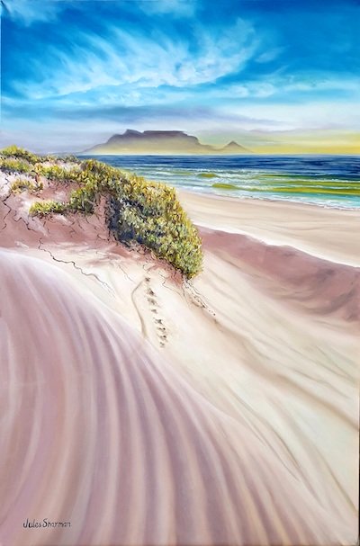 This is the section where you can "get your name in lights!" (well at least out there in the internet world!).If you have works in progress you would love to show off, or finished pieces you are particularly proud of, we would love to see them! We especially like to hear about the story behind the creation. This month's submission comes from rising star and Explore forum regular, Tassie artist Jules Sharman. From Jules: "Here is the making of ‘Natural Beauty’ oil on Italian Linen. The scene is a real location in South Africa – Dolphin Beach looking out towards Iconic Table Mountain and Lions Head. A shout out to @dolfieman for permission to use his photography. As a full-time artist I film the painting process of nearly every painting I do for YouTube and other purposes, so I have many to choose from, but thought this one most beneficial for a few reasons. Mainly because it shows just how painting, creating perspective and composition can be done unconventionally even when using reference photos, and how being flexible during the process is a valuable skill to apply and beats being rigid! In earlier days when I was learning seascapes, I found it easier to use reference photos and anything with water and waves did the trick at that time. Two things changed in a short time – one – I ditched all reference pics and started painting from my ‘head’ or ‘imagination’ as I found following reference pics encouraged me to be rigid, hence limited my mindset and ability in establishing techniques and improvements as I became bogged down in ‘wanting it look the same’ instead of developing my own unique colour palette, style and accepting the fact that it’s another skill in the belt to use reference photo’s as exactly that - a reference – NOT something to copy to a tee.
