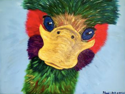 to showcase. You can even nominate someone if you like. (Or yourself!). To do this, check out the forum and then send us an email! It’s that easy. This month we're featuring artist Rhonda Pock from Omak, WA USA, with her cute painting,"Pip". Thanks so much for sharing your painting Pip, this piece brings such a fun energy! Click here for more information on Rhonda's "Pip"