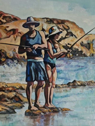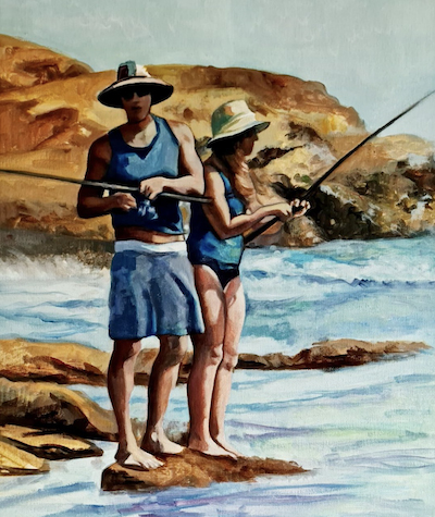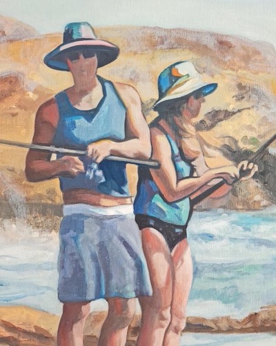 This is the section where you can "get your name in lights!" (well at least out there in the internet world!).If you have works in progress you would love to show off, or finished pieces you are particularly proud of, we would love to see them! We especially like to hear about the story behind the creation. This month's submission comes from talented Aussie artist Sherry McCourt, with her painting "Sharing The Best Spot". From Sherry: "If you live near some of NSW best beaches, it's a given that you'll be inspired by what you see. Every beach has it's own draw card - some attract surfers, some call to families with children and some beckon to rock fishing.