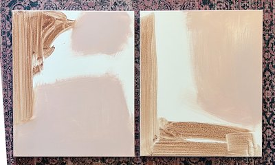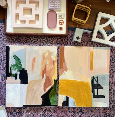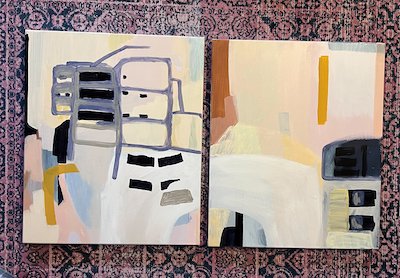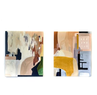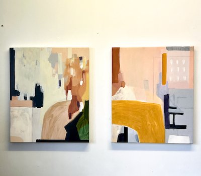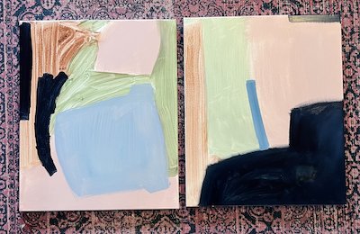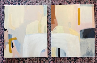After a while nothing is irritating me anymore and there is more looking and less painting. It might take a day (or a year!) but the last final touches are usually small and necessary, to ensure it feels balanced. These only took me a couple of days and I’ll finish them with a wax varnish when they’re completely dry." “The Rocks I” and “The Rocks II” Acrylic on Polycotton 60cm x 50cm