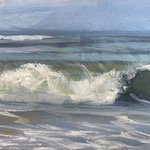 From that point on, the painting was to-ing and fro-ing between the transitions between the light and the slightly less lit areas; and representing the warm to cool theory (i.e, warmer colours closer to the light source, cooler colours further out from the light source). I did this in the surface of the water, the breaking wave, the smaller whitewash in the foreground and the wet sand as well. I then grabbed a dry brush, pushed a little bit of Permanent Alizarine into the outer extremes of that transition, and then mixed Cadmium Yellow Medium and did the same thing closer to the light source. A few little highlights here and there to suggest the spray on the face of the wave, and to suggest the wave curving over as it broke. Then of course there was the obligatory meandering around the painting for an hour or two, not making much of a difference but just putting some paint here and there. I think we have to go through that before we realise the painting is actually finished. :D This type of painting is something that I tend to do when I’m a bit stuck. It’s light, it’s fun, it reminds me of how much fun painting is, it re-establishes all the theories, and as a bonus, it looks great :) It’s always surprising just how much colour you can work into an area which can easily be seen as being quite dark and uninteresting.