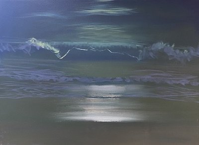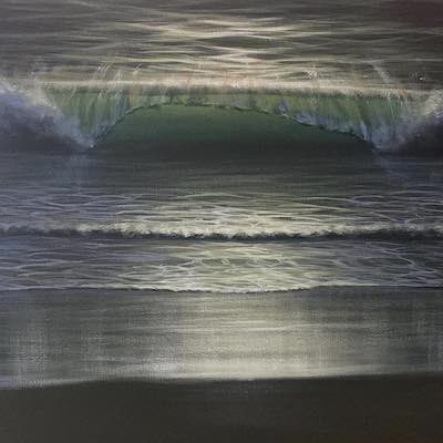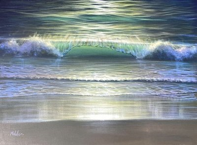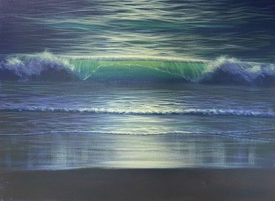 This is the section where you can "get your name in lights!" (well at least out there in the internet world!).If you have works in progress you would love to show off, or finished pieces you are particularly proud of, we would love to see them! We especially like to hear about the story behind the creation. This month's submission comes, again from our very own Mark Waller with his painting "The Not-Waves". From Mark: "This painting came about because we’d just done a workshop, and happened to come across the idea of painting the wave by painting the bits that aren’t the wave, or, as we said in the workshop, painting the “not-waves”. I used a mixture of Free Flow and Atelier Interactive for this painting, the White Free Flow to draw out longer lines and the surface fo the water, and the AI to tint it, and in areas where I needed to blend. So basically I started off with a background that I thought might represent some of the colour that you might see in the dark, at night. I prepared the canvas with a mix of Dioxazine Purple and Pthalo Blue, with a small strip at the bottom right hand side which had a little Cadmium Yellow Medium and I almost eliminated the Pthalo Blue (too green).