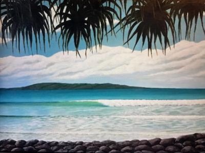 to showcase. You can even nominate someone if you like. (Or yourself!). To do this, check out the forum and then send us an email! It’s that easy. This month we're featuring artist Margot, from Currumbin Valley, Queensland with her lovely painting,"Pandanus Beach". Thanks so much for sharing this with us Margot, we are so happy your daughter is hanging it in her place! Click here for more information on Margot's "Pandanus Beach"