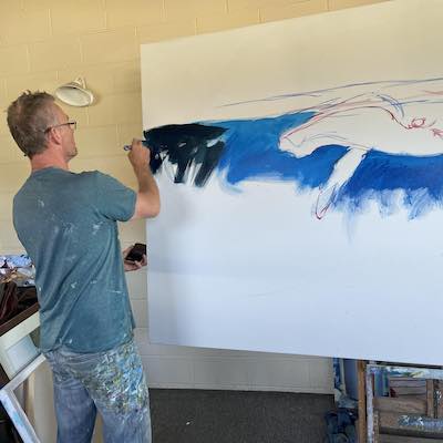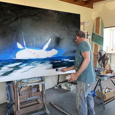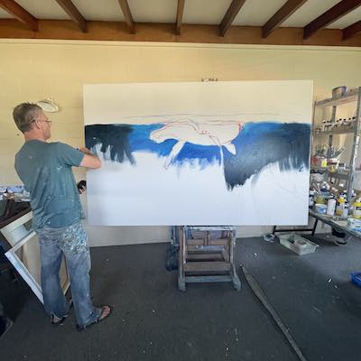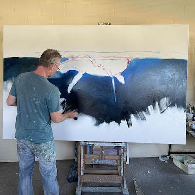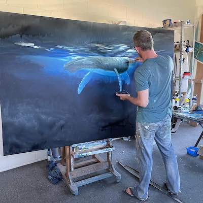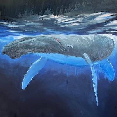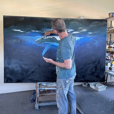 This is the section where you can "get your name in lights!" (well at least out there in the internet world!).If you have works in progress you would love to show off, or finished pieces you are particularly proud of, we would love to see them! We especially like to hear about the story behind the creation. This month's submission comes again, from our very own Mark Waller, with the journey of this majestic whale painting, simply titled "Blue". From Mark: "It seems to me we spend a lot of time in our heads. And there’s a whole world going on out there that we’re not aware of. I came across a picture of a whale that was down deep. It looked almost as though the whale was in moonlight. I came across another picture of a whale breaking the surface, and started thinking about what whales do at night. And of course, being a painter, all I could think of was how beautiful, ominous and wonderful that thought was. I created an image that I thought could somehow speak to that.