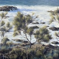 It was time to get into the detail under the tree, and pay more attention to where everything was placed in that area. That all went pretty well (surprisingly!) and I went back to those last little waves in the bottom corner. The client wanted some light showing through the faces of the little wavelets, so this because the focus. When that was done, I tidied up the bottom right corner by reflecting the sky and tidying up the ripples. A couple of coats of Universal Medium and Varnish, the edges tidied up, and off it goes to its new home.