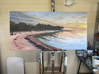 This is the section where you can "get your name in lights!" (well at least out there in the internet world!).If you have works in progress you would love to show off, or finished pieces you are particularly proud of, we would love to see them! We especially like to hear about the story behind the creation. This month's submission comes once again, from our own comedy masterchef, Mark Waller :) From Mark: "Dunsborough Foreshore" It’s always a joy to do work for previous customers, particularly when the image is so compelling. One of our friends from WA wanted this picture of his part of the world, and this is based on the Dunsborough foreshore. He was quite open about what he wanted, but did like the idea of a still day, and the sun going down over the water. Lots of wiggle room.