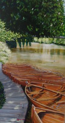 I did a smaller practice painting (in which the boats looked as if they were going up hill) and the produced this larger version.