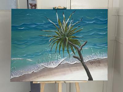Just wanted to share my second piece which is much larger and an attempt to put 3 of Mark's lessons together, being how to paint water, sand and refraction and the pandanus palm. I had a lot of issues along the way mainly my amateur brush strokes.