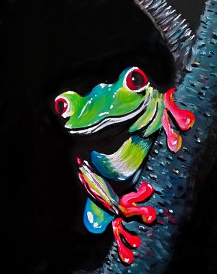 We named it "Fearless Frog" and it is my second version of him since the first one sold quickly. I am sure it will change slightly every time I lead a class, but in it I used a lot of Mark's techniques. Gradations, washes/glazing, dry brush and the play of light and dark to create texture visually. I am very excited to teach this one!