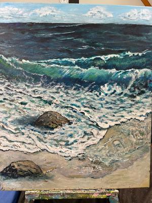 Finally, after looking at lots of pics of waves I revisited the painting and hopefully have done it some justice.