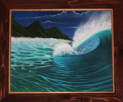 This is done in acrylic on canvas, with hand made cedar framing.