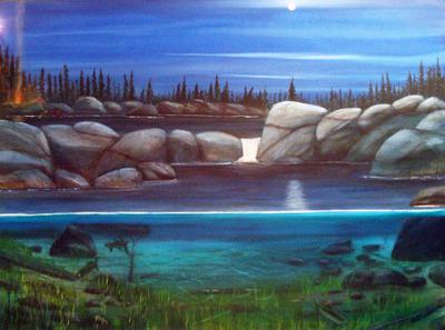 The surface and underwater split is unique as far as what I've ever seen. A beautiful painting with atmosphere.