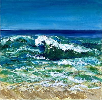 Having moved to Hawaii, I decided I wanted to paint the ocean in a more abstract style, so I picked up a palette knife and used my fingers for this quick 14 x 14 acrylic piece.