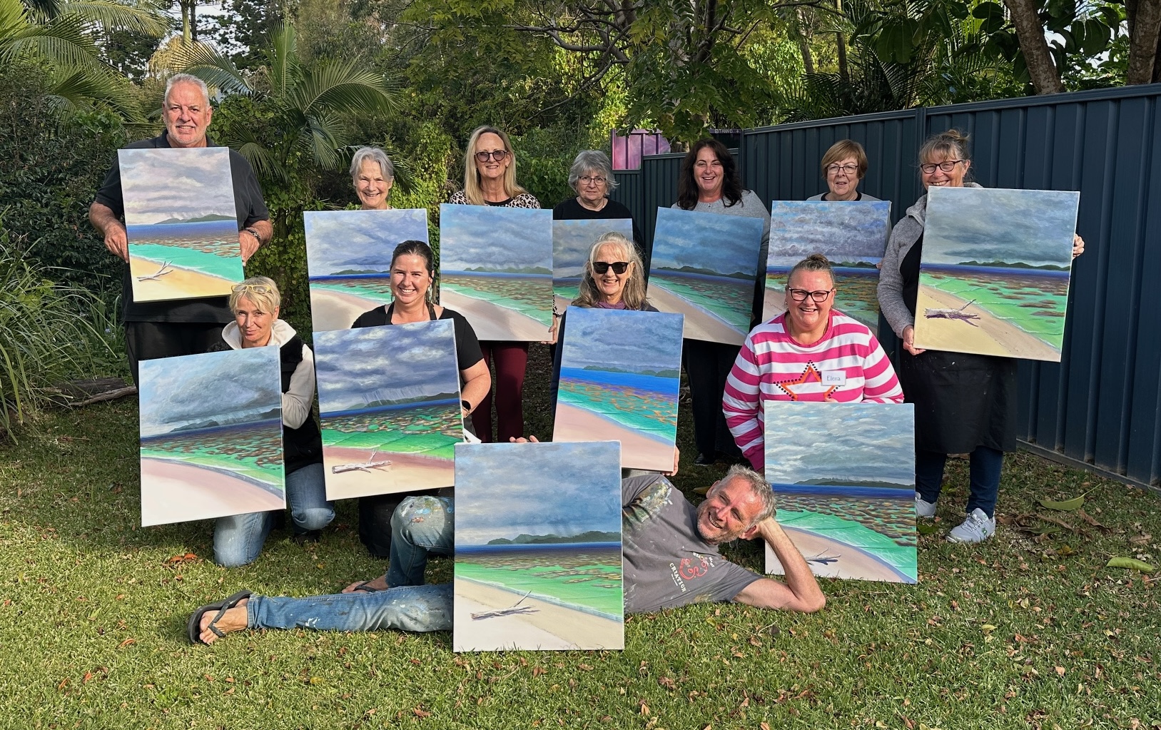 Thank you so much for a great workshop at Bribie Island Arts Centre. I love painting seascapes and Mark's subjects always seem to resonate with me. I love to learn new techniques that I can apply to my own paintings. I find it quite helpful to prepare the canvas before the workshop as we can get straight into the learning process. The informal friendly atmosphere of the classes makes it easy to relax and become absorbed in the lessons. As I usually paint alone, it is also so much fun to paint with other artists. Thank you!